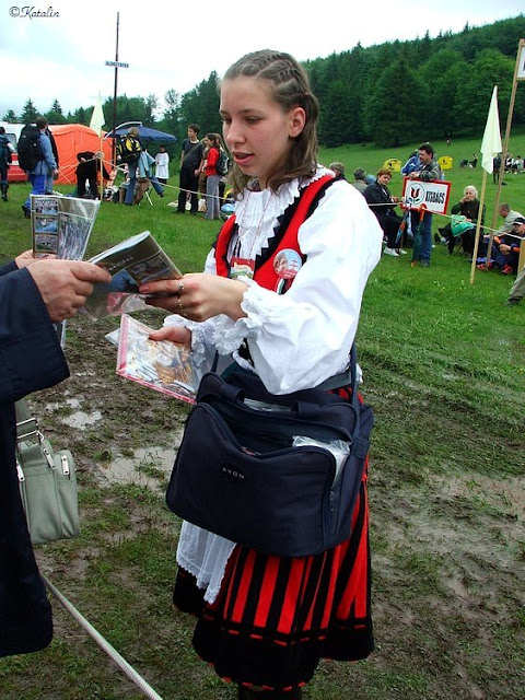 | Székely népviseletbe öltözött lányok emléktárgyakat árultak |